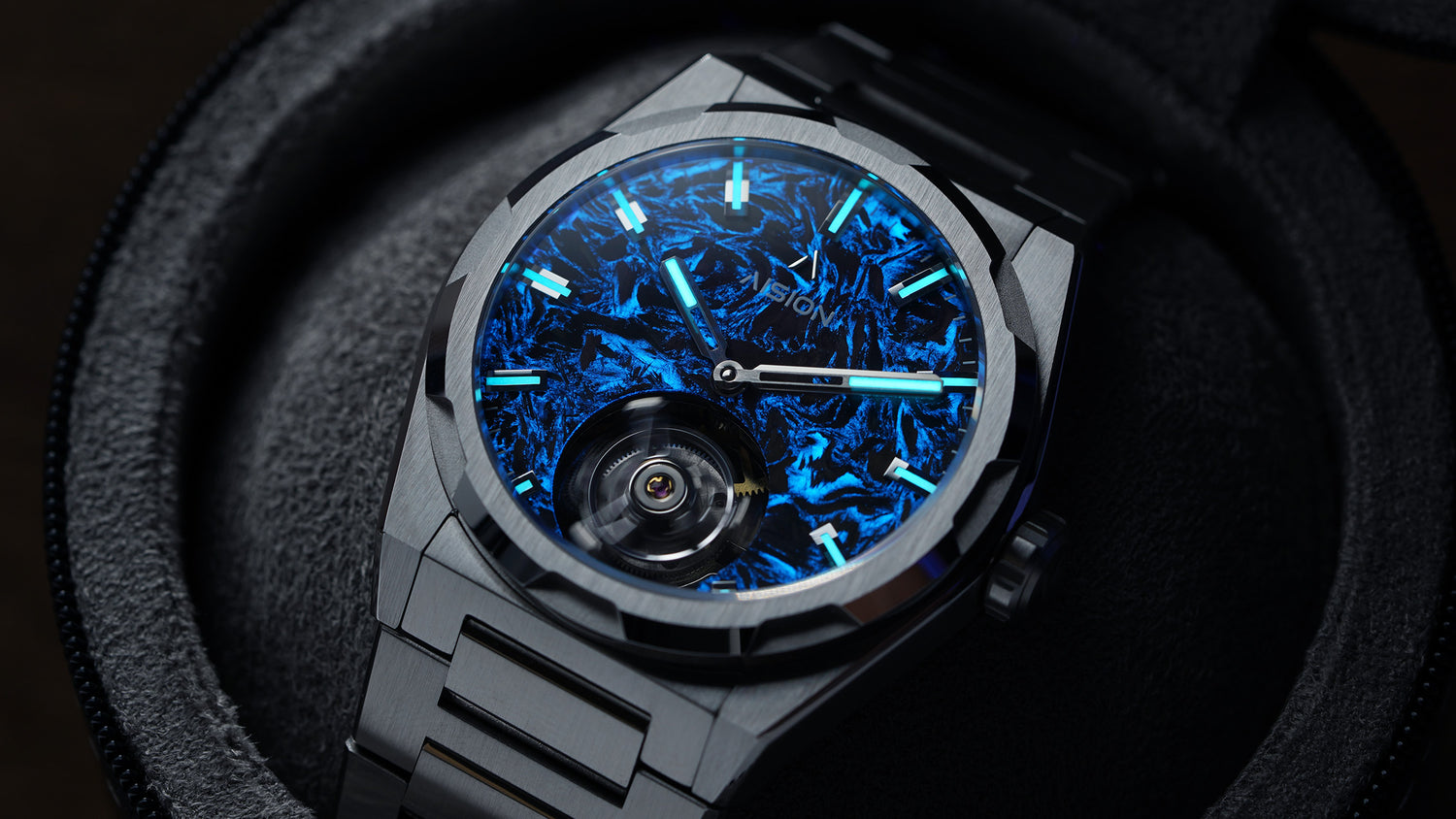 AISION 陀飛輪- 夜光鍛造碳纖維錶盤 - 藍色